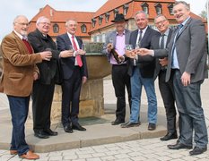 Weinausschank aus dem Domnapf zum Jubiläum der Neugründung