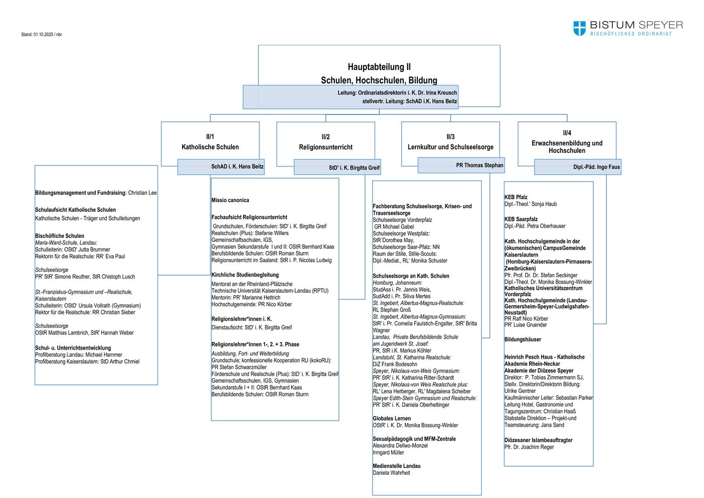 Organigramm der Hauptabteilung Schulen, Hochschulen, Bildung (HA II)