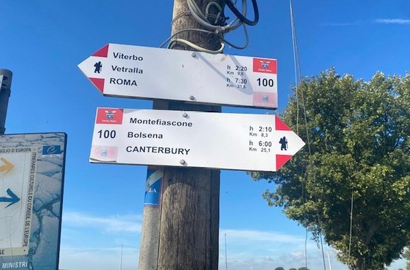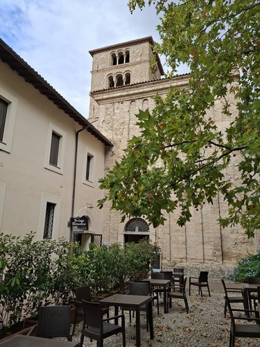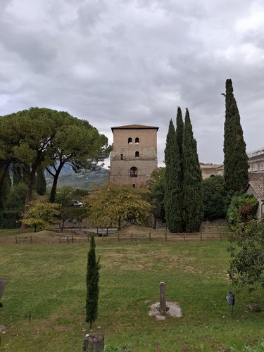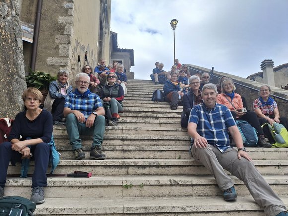 Geschafft - der zweite Pilgerwandertag. Unterwegs waren wir auf vielen Teer- und Betonwegen, das geht in die Knie, zumal es steil hoch zur Kirche in Toffia ging, dann wieder tief hinab ins Tal und wieder hinauf zur Abazia di Farfa. Da passte: "Lass mich langsamer gehen, Gott, entlaste das eilige Schlagen meines Herzens durch das Stillwerden meiner Seele." Fällt manchem gar nicht so leicht, das langsam gehen und stille sein. Dafür entdeckt man aber manchen blühenden Schatz am Wege. Höhepunkte des Tages: Picknick auf der Treppe vor der Kirche in Toffia und die Führung durch die Abtei von Farfa, wo auch der wohlverdiente Espresso und Cappuccino ausgezeichnet geschmeckt haben. Grazie!