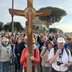 Dort konnten die Teilnehmenden das Pilgerkreuz, das sie auf den Etappen begleitet hat, an Bischof Wiesemann übergeben.