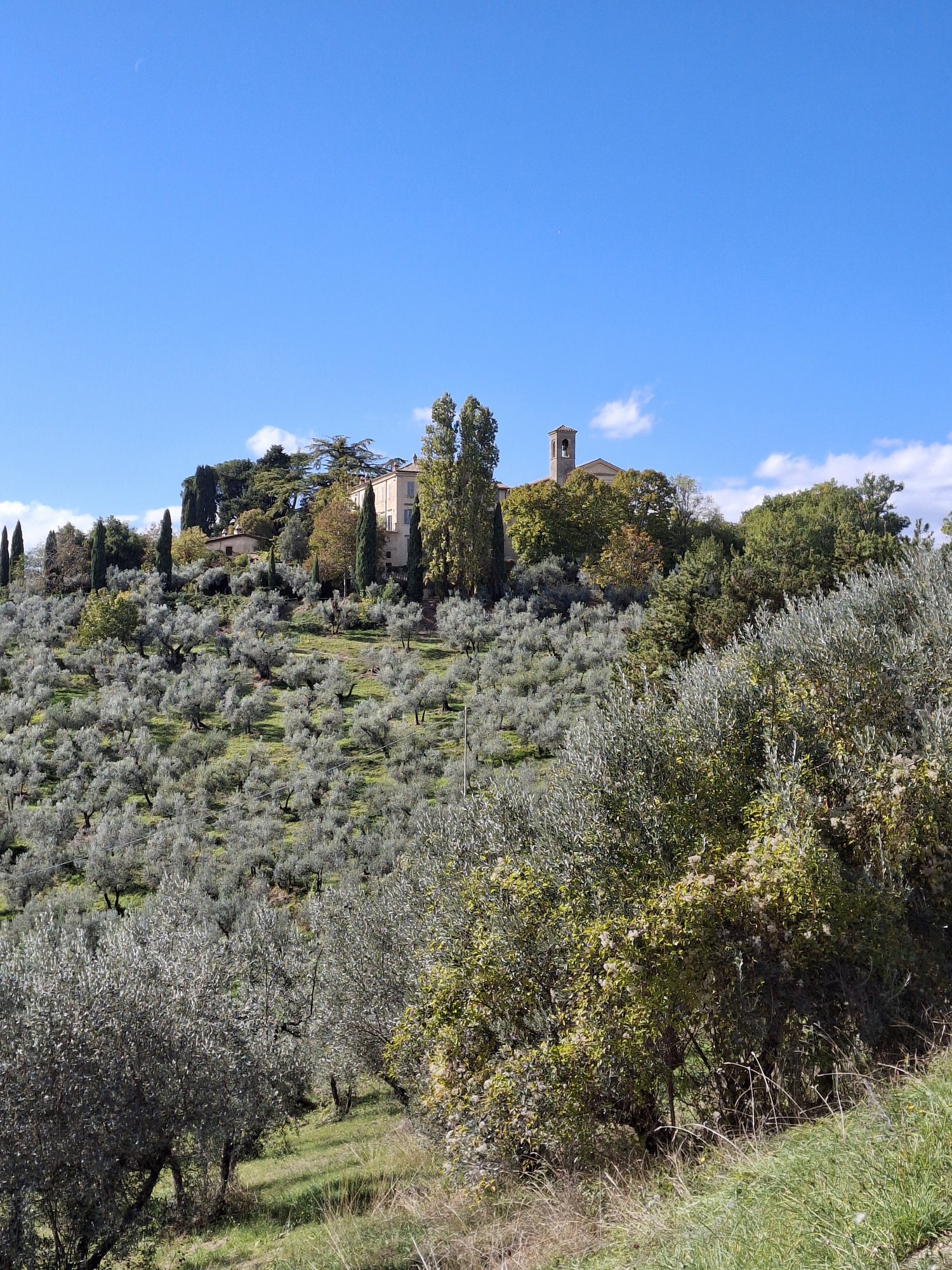 Zwischendurch gestärkt mit Bruschetta und Olivenöl ging es mal schweigend, mal in fröhlichen Gesprächen pilgernd durch Olivenbaumhaine, Wald und Wiesen. Über allem blauer Himmel und Sonnenschein, dabei war der Weg doch recht anstrengend und brachte manchen nahe an seine Grenzen. Doch zu guter Letzt sind alle wieder gut in Rieti angekommen.
