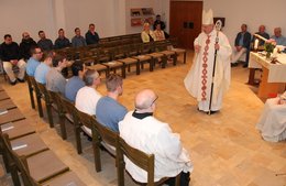 Bischof Wiesemann firmt Studenten im Kloster Esthal