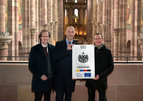 Anschließend hielt der Wiener Historiker Günter Fuhrmann im Forum des Historischen Museums vor geladenen Gästen einen Festvortrag zum Thema „Habsburg zwischen Rhein und Donau“. Die offizielle Aufnahme des Doms in die Via Habsburg erfolgte durch Vinzenz Baron von Stimpfl-Abele, Mitglied des Vorstandes der „Via Habsburg“ und Prokurator des St. Georgs-Orden. Er erklärte: „Der Kaiserdom zu Speyer, mit seiner reichen Geschichte und der tiefen Verbindung zum Erzhaus, ist ein ganz besonderes Juwel, das die ‚Via Habsburg‘ bereichern wird. Umgekehrt rückt dieses eindrucksvolle Gotteshaus – die größte erhaltene romanische Kirche der Welt – durch die Aufnahme noch mehr in das europäische Bewusstsein, wodurch langfristig auch die Tourismusregion profitieren wird.“ Die Aufnahme erfolgte durch die Übergabe einer Kennzeichnungs-Tafel zu Händen von Domdekan und Domkustos Dr. Christoph Kohl als Vertreter des Domkapitels.
