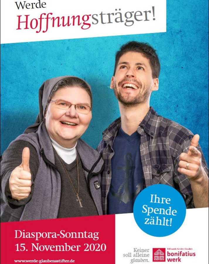 Aufgrund der Corona-Pandemie und den damit verbundenen eingeschränkten Gottesdienstbesuchen rechnet das Bonifatiuswerk mit einem erheblichen Rückgang der Kollekte. Deshalb sind die Projektpartner mehr denn je auf eine Onlinespende zum Diaspora-Sonntag angewiesen: https://www.bonifatiuswerk.de/online-spende/.
