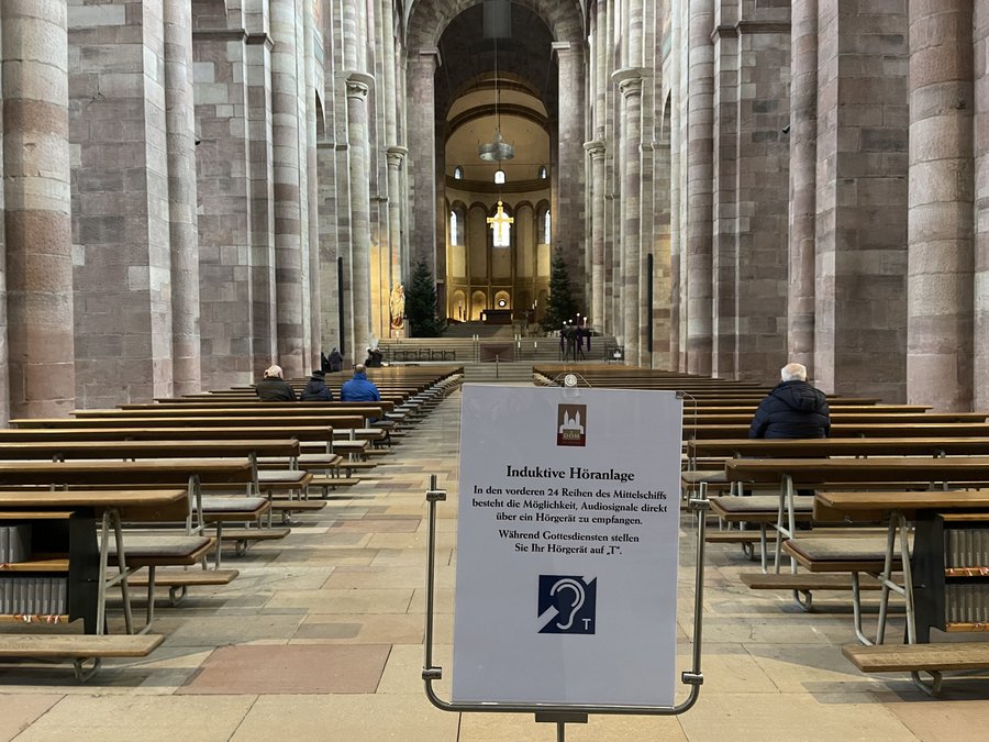 Speyer. Die Erneuerung der Lautsprecheranlage gehörte 2022 zu den großen Projekten am Dom. Mehrere Kilometer Kabel mussten hierfür neu verlegt und neue Lautsprecher installiert werden. Nun konnten – rechtzeitig vor Weihnachten – die letzten Arbeitsschritte zur Inbetriebnahme einer induktiven Höranlage abgeschlossen werden. Damit können Redebeiträge oder Musik, die über Mikrophone im Dom aufgenommen werden, direkt auf Hörgeräte übertragen werden. Menschen mit Höreinschränkungen können so die Audiosignale direkt im Ohr empfangen, was in einem großen, halligen Raum wie dem Dom sehr hilfreich ist.
