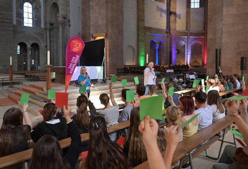 Die Firmgruppen pilgern nach Speyer, begleitet durch Impulse und Aktionen zum Mitmachen. Dafür wurden mehrere Podcasts vorbereitet. In Speyer entdecken die Jugendlichen, inspiriert durch kleine Führungen und Impulsen von Guides aus der Jugendabteilung, den Dom, treffen sich zum Gespräch mit Bischof Dr. Karl-Heinz Wiesemann und feiern einen Jugendgottesdienst mit ihm. Dieser wird von der Band „CK & friends“ gestaltet
