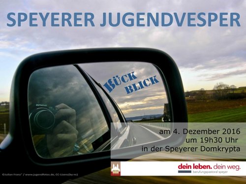 Speyer. Die Stelle „Berufe der Kirche“ im Bistum Speyer lädt zur nächsten Jugendvesper in der Krypta des Speyerer Domes am Sonntag, den 4. Dezember, um 19.30 Uhr ein. Thema ist dieses Mal der "RückBlick" auf das Jahr 2016. Das Portal an der Dom-Nordseite ist ab 19 Uhr geöffnet.