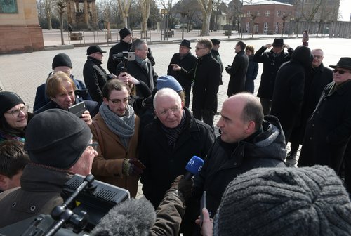 Begleitet wurde das Würzburger Domkapitel durch eine rund 20-köpfige Delegation fränkischer Journalisten, darunter mehrere Fernseh- und Hörfunkteams. Sie umlagerten den künftigen Bischof und nutzten die Gelegenheit, persönliche Eindrücke zu sammeln.