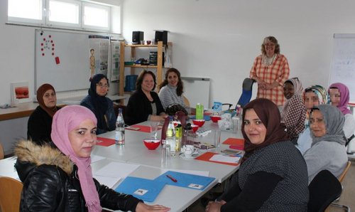 Elf Frauen aus sechs Nationen zeigten sich am Informationsabend sehr interessiert am Malteser Kunstworkshop für geflüchtete Frauen.