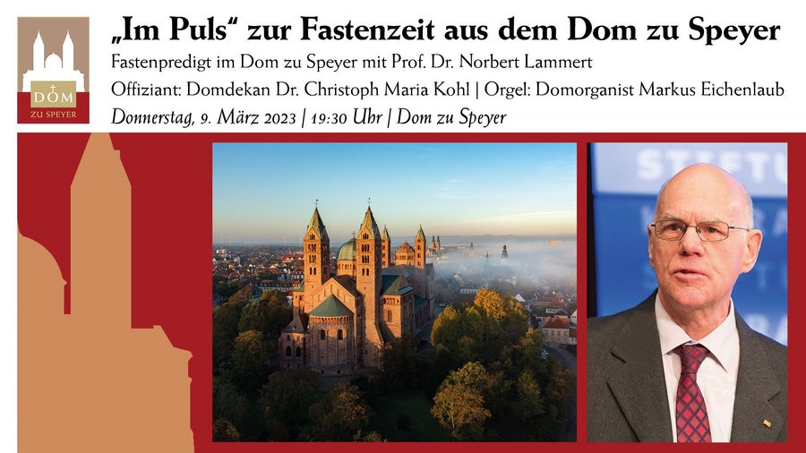 Speyer. Nach Fertigstellung der Video-Streaming Anlage im Dom zu Speyer sollen in einem Pilotprojekt die Fastenpredigten im März 2023 live auf den Social Media Kanälen von Dom und Bistum übertragen werden. Am Donnerstag, 9. März, 19:30 Uhr, wird der ehemalige Bundestagspräsident und Vorsitzende der Konrad-Adenauer-Stiftung e.V. Prof. Dr. Norbert Lammert als Gast im Dom predigen. Die frühere Bundesministerin und ehemalige deutsche Botschafterin beim Hl. Stuhl Dr. h.c. Annette Schavan spricht am Donnerstag, 16. März, um 19:30 Uhr in der romanischen Kathedrale. Als Abschluss der vom Domkapitel initiierten Predigtreihe wird am 23. März, ebenfalls um 19.30 Uhr, Bischof Dr. Karl-Heinz Wiesemann die dritte Fastenpredigt halten.