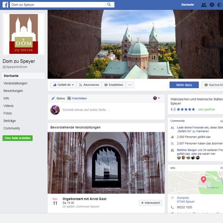 Der Dom hat seit Kurzem eine eigene Facebook-Seite – und bereits fast 3.000 „Likes“! Aus aktuellem Anlass findet sich dort ein Video zum 1000. Geburtstag von Heinrich III., in dem erklärt wird, was den salischen Kaiser während seiner Herrschaft mit dem Dom verband. Neben aktuellen Informationen teilt das Besucher- und Kulturmanagement des Doms dort fotografische und filmische Impressionen der Domkirche mit den Fans der Seite. Außerdem bietet das Format die Möglichkeit, einfach und schnell in Dialog mit allen „Dom-Followern“ zu treten.