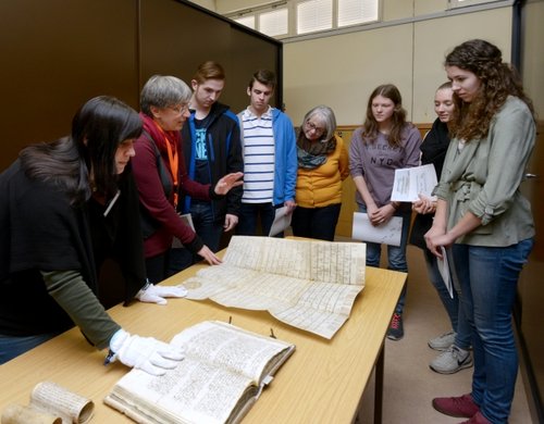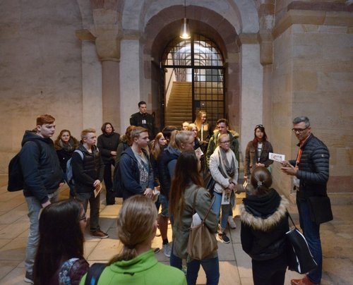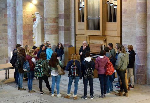 Am Beginn der insgesamt sechs Schülertage steht die Begegnung mit dem Dom. In Kleingruppen lernen die Jugendlichen zum Beispiel die Krypta, die Dom-Orgel oder die Sakristei mit dem „Codex Aureus“ kennen. Anschließend stehen Grundinformationen über das Bistum und Schlaglichter zur Arbeit des Caritasverbandes auf dem Programm.