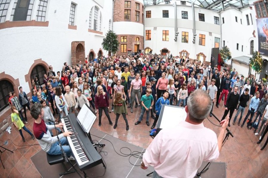 Nach zwei gemeinsamen Proben am Freitagabend und Samstagmorgen im Dom konnten die Jugendlichen die Stadt und den Dom bei Turmbesteigungen und Kryptabesuch näher kennenlernen. Am Abend fand ein offenes Singen für die Kinder und Jugendlichen im Forum des Historischen Museums der Pfalz unter Anleitung von Bertrand Gröger, dem renommierten Leiter des Jazzchors Freiburg, und dem Beatbox-Experten Julian Knörzer statt.