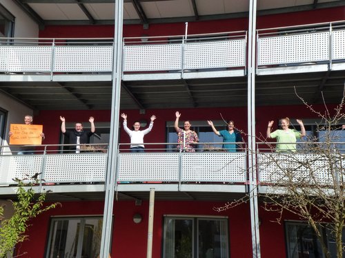 Bewohner können ihren Angehörigen auch mal vom Balkon aus zuwinken, so kann man sich wenigstens sehen.
