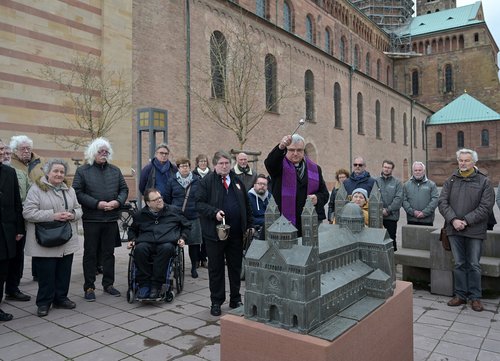 Speyer. Am 10. März war es genau 25 Jahre her, dass 73 Frauen und Männer den Dombauverein Speyer gegründet haben. Der Verein feiert sein 25-jähriges Bestehen unter anderem damit, dass er einen Tag später der Öffentlichkeit ein Blindentastmodell des Speyerer Doms übergab. Das detailgetreue Modell aus Bronze im Maßstab 1:100 wird dauerhaft auf einem Sandsteinsockel auf der Südseite des Doms stehen. Es ist das größte seiner Art. Bei der Realisierung des Projektes wurde der Dombauverein insbesondere von Spenden des Lions Club Speyer in Höhe von 20.000 Euro und der Unternehmerin Susanne Klatten sowie dem Unternehmer Stefan Quandt mit jeweils 10.000 Euro unterstützt.