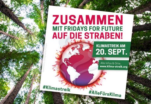 Setzt mit uns ein starkes Zeichen für den Schutz unseres Klimas und damit den Schutz unserer Erde und unterstützt den Globalen Klimasteik am 20.9.2019.