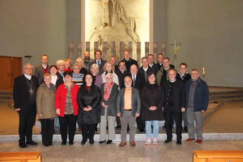 Nach einem Stehempfang feierten sie gemeinsam mit Bischof Dr. Karl-Heinz Wiesemann und Generalvikar Markus Magin einen stimmungsvollen Dankgottesdienst in der Seminarkirche. Bischof Wiesemann verwies zu Beginn seiner Ansprache auf die etwas sperrigen Worte des Tagesevangeliums. Im Schrifttext des Lukasevangeliums Kapitel 21, ist den Rede von Verfolgung aber auch vom Auftrag im eigenen Leben, Zeugnis fürs Evangelium abzulegen. Dort heißt es „Wenn ihr standhaft bleibt, werdet ihr das Leben gewinnen“. Nicht nur im beruflichen Kontext gibt es Situationen, in denen kirchliche Mitarbeiterinnen und Mitarbeiter mit Sätzen wie „Wie kannst du für diese Kirche arbeiten?“ konfrontiert werden. Da koste es immer wieder Kraft und Überwindung, standhaft zu bleiben und weiterzuarbeiten. Christinnen und Christen sind aufgefordert, bei all den kirchlichen und gesellschaftlichen Herausforderungen, „Profil“ und „Kante“ im Sinne des Evangeliums zu zeigen.