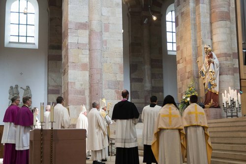 Speyer. Mariä Himmelfahrt ist in der Domstadt wie überall ein Feiertag für alle Katholiken, aber in Speyer ist er darüber hinaus ein ganz besonderer Tag: Er ist gleichzeitig das Hochfest der Kathedrale und Wallfahrtstag zu Ehren der Muttergottes, der Hauptpatronin des Doms. Bischof Dr. Karl-Heinz Wiesemann leitete das Pontifikalamt im vollbesetzten Dom.