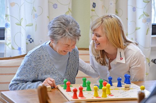 Gemeinsame Gesellschaftsspiele mit demenziell veränderten Menschen sind eine Tätigkeit von Malteser Demenzbegleitern