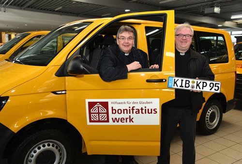 “Pflegen Sie den BONI-Bus, aber schonen Sie ihn nicht. Nutzen Sie ihn gut für die Vielfalt der pastoralen Aufgaben. Erzählen Sie vom Bonifatiuswerk. Denn Menschen können nur etwas unterstützen, das sie kennen. Und Glaubenshilfe wird immer wichtiger “, sagte Monsignore Georg Austen, Generalsekretär des Bonifatiuswerkes, bei der Übergabe der VW-Busse.