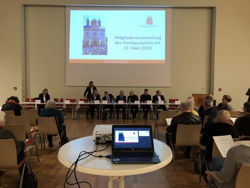 Nachdem keine Anträge aus den Reihen der Mitglieder vorlagen, wurde der mit dem Ausblick auf die Planung des Vereins im laufenden Jahr 2018 der letzte Tagesordnungspunkt aufgerufen. Hier wies der Vorsitzende Dr. Jung auf die anstehenden Veranstaltunten des Vereins hin. Neben den etablierten Formaten stehen erstmals Baustellenführungen mit Dombaumeister Mario Colletto auf dem Programm. Mitgliederwerbung und Spendengewinnung skizzierte er als die inhaltlichen Schwerpunkte der Vorstandsarbeit. Als Zukunftsprojekt nannte Jung die Realisierung eines Blindentastmodells. Abschließend dankte der Vorsitzende den Mitgliedern des Vereins für ihr Kommen und ihre Unterstützung.
