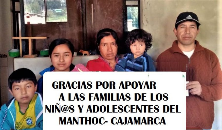 "Wir benötigen Ihre Hilfe, mit Ihrer Unterstützung können Sie einen Beitrag für die Familien der bedürftigsten Kinder und Jugendlichen in Cajamarca leisten. Wir sind über jede Spende - seien es fünf Euro oder mehr – dankbar! Die gesammelten Spenden werden vollständig an MANTHOC Cajamarca überwiesen."