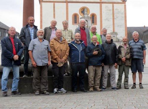 Und Sonntag regnete es, es wurde kühler. Das führte zu einem verkürzten Programm. Dem Gottesdienst in der Benediktinerabtei St. Matthias folgte eine Abschiedsrunde. Alle Männer waren sich einig, dass es ein schöner Pilgerweg war, der zwar vor allem wegen der Temperaturen anstrengend, aber abwechslungsreich war und neue Perspektiven für jeden einzelnen eröffnete. Schweigend absolvierte Strecken oder die Gespräche miteinander wurden als angenehm empfunden. Den Begleitern Rainer Mäker und Axel Ochsenreither wurde gedankt für ihre Impulse und Gedanken, Geschichten und Anregungen, Gespräche auf dem Weg und die Organisation. Es waren wieder vier beeindruckende Tage in einer tollen Gemeinschaft!