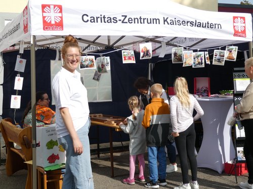 Der Stand des Caritas-Zentrums lockte mit dem Geschicklichkeitsspiel Jakkolo nicht nur Kinder an. Auch Erwachsene nutzten die Gelegenheit, auf dem Holzbrett ihre strategische Fähigkeit zu testen. „Dabei ergibt sich oft die Gelegenheit, mit den Menschen ins Gespräch zu kommen. Und wir haben einen Kasten aufgestellt, in dem uns jeder eine schriftliche Rückmeldung über das geben kann, was ihm im Quartier gefällt, was er sich wünscht oder vielleicht auch zu kritisieren hat“, so Lara Schatzmann, Mitarbeiterin des Kaiserslauterer Caritas-Zentrums.