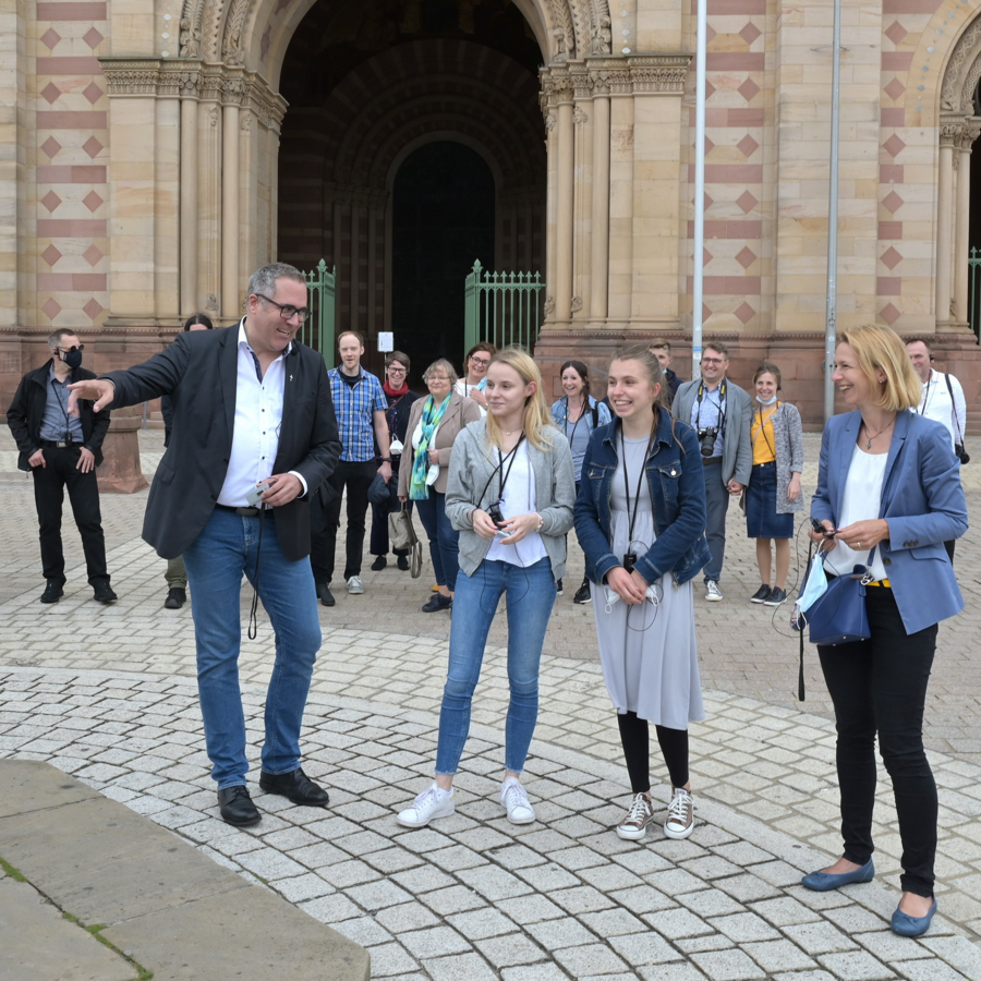 Die Schülerinnen, ihre Familien und Lehrkräfte der Schulen wurden am vergangenen Wochenende nach Speyer eingeladen. Ordinariatsdirektorin Dr. Irina Kreusch empfing sie im Garten der Hauptabteilung zu Kaffee und Bretzeln. Zum Dank für ihr Engagement erhielten die Schülerinnen jeweils ein Gotteslob mit Widmung, dann ging es weiter zum Dom zu Speyer. Hier zeigte Generalvikar Andreas Sturm in einer Führung seinen persönlichen Blick auf den Dom.