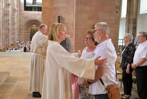 Speyer. Unter dem Leitwort „Liebe miteinander leben“ feierten am Wochenende 600 Ehepaare aus dem Bistum Speyer ihr Ehejubiläum. Die zwei Gottesdienste im Speyerer Dom wurden von Bischof Dr. Karl-Heinz Wiesemann zelebriert. Gekommen waren Eheleute aus der gesamten Diözese, die silberne, goldene, diamantene Hochzeit oder ein anderes Jubiläum feierten. Einige Jubelpaare waren darunter, die ein außergewöhnliches Jubiläum von 70 und mehr Ehejahren, die Gnadenhochzeit, feierten, ein Hochzeitstag, der selten ist. „Immer wieder von Neuem füreinander da zu sein und sich ewige Treue zu schwören, ist ein besonderer Moment, der gefeiert gehört!“, begrüßte Bischof Dr. Karl-Heinz Wiesemann die Ehepaare und ihre Familien im Dom zu Speyer.