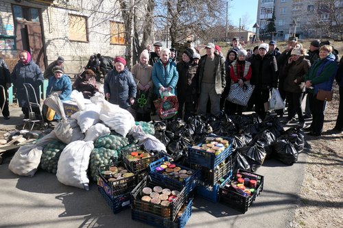 380 solcher Pakete waren in Pershotrawensk in einer Pfarrei der Herz-Jesu-Priester gepackt worden. Die Ehrenamtlichen haben dabei nicht nur die mitgebrachten deutschen und polnischen Lebensmittel verpackt, sondern Eigenes dazugetan: vor allem Eingemachtes und Kartoffeln. Diese Hilfsbereitschaft hat P. Hemken beeindruckt: „Die Gastfreundschaft der Menschen, aber auch die Solidarität und das Mitgefühl, anderen etwas abzugeben, auch wenn man selbst so wenig hat!“