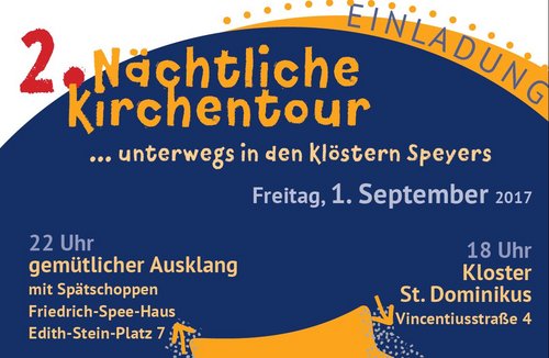 Speyer. Die Pfarrei Pax Christi in Speyer lädt ein zu ihrer zweiten nächtlichen Kirchentour am Freitag, 1. September. Dabei bietet sich die Gelegenheit, das Leben in den Speyerer Klöstern direkt vor Ort kennen zu lernen.