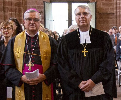 Bischof Wiesemann und Kirchenpräsident Schad - hier bei einem gemeinsamen Gottesdienst in Kaiserslautern 2018 - stellen sich bei dem Universitätsgottesdienst den Fragen der Studierenden
