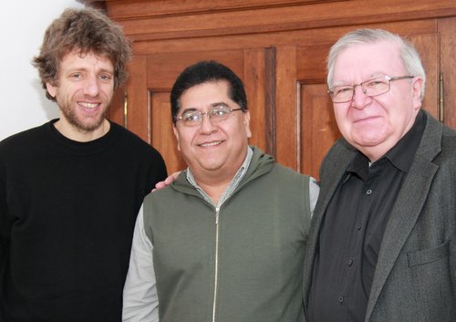 Julio Eduardo Meléndez (Mitte), eingerahmt von Christoph Fuhrbach (links) und Weihbischof Otto Georgens (rechts), die für das Bistum Speyer die weltkirchliche Arbeit koordinieren.