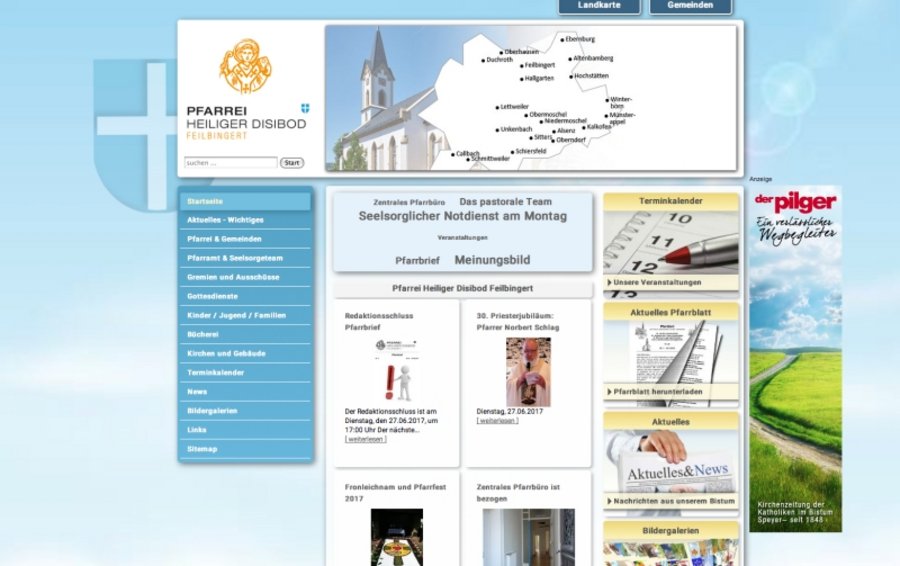 Feilbingert. Die Pfarrei Heiliger Disibod mit dem zentralen Pfarrbüro im nordpfälzischen Feilbingert geht zum neuen Monat mit ihrer neuen Pfarrei-Homepage online. Damit ist die Gesamtpfarrei mit ihrer nur einen Gemeinde bestehend aus 23 Ortsgemeinden erstmals im Internet vertreten. „Wir sind eine Flächenpfarrei mit vielen weiten Wegen zwischen unseren Kirchen und Einrichtungen, da ist Vernetzung und Kontaktpflege notwendig. Und das soll unter anderem auch durch den neuen Internetauftritt geleistet werden“, sagt Wolfgang Justenhoven. Er ist stellvertretender Vorsitzender des Pfarreirats und Mitglied des Verwaltungsrates der Pfarrei und zeichnet für die Öffentlichkeitsarbeit der Pfarrei verantwortlich. „Wir möchten uns als große Gemeinschaft vorstellen, die viele verschiedene Angebote gestaltet“, sagt der ehrenamtlich Engagierte.