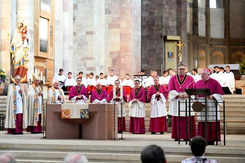 Bischof Dr. Karl-Heinz Wiesemann begrüßte die Familie von Generalvikar Sturm, seine Freunde und Weggefährten. Mit besonderer Freude und Dankbarkeit begrüßte er die rund 300 Gläubigen, die sich aus St. Ingbert, Sturms vormaliger Pfarrei, auf den Weg nach Speyer gemacht hatten, und die Sturm „nur unter Tränen“ gehen ließen, wie der Bischof sagte.