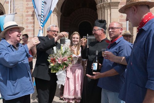 Speyer/Kirrweiler. Zum achten Mal in der Geschichte des vor gut 200 Jahren neugegründeten Bistums Speyer wird ein fürstbischöflicher „Weinzehnt" den Weg von Kirrweiler nach Speyer nehmen – zuerst mit Traktor und Anhänger, dann mit Pferden und Fuhrwerk. Bischof Dr. Karl-Heinz Wiesemann und Weihbischof Otto Georgens werden die Weinfuhre am Freitag, 22. Juni, gegen 15 Uhr vor dem Speyerer Dom in Empfang nehmen. Die Kutsche mit dem Wein wird begleitet von einer Delegation der Ortsgemeinde mit dem Kirrweiler Bürgermeister Rolf Metzger, Weinprinzessin Kerstin I. und Pfarrer Peter Nirmaier. Der Zug mit der Pferdekutsche wird von der Stadthalle über die Bahnhofstraße zum Altpörtel und dann über die Maximilianstraße zum Dom führen.