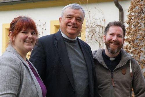 Die BDKJ-Diözesanvorsitzenden Lena Schmidt und Carsten Leinhäuser (rechts) trafen sich zum Jahresgespräch mit Bischof Wiesemann.