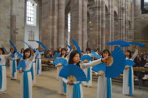 Die nigerianische Gabenprozession wurde zum Ausdruck unendlicher Lebensfreude im Gedenken an den Erlöser. Vietnamesische Frauen und Kinder drückten ihre Ehrfurcht vor Gott in einem Tanz aus, brachten ihm verschiedenfarbige Blumen als besondere Gaben dar. Dem ukrainischen Gemeindechor oblag die gesangliche Untermalung eines multikulturell strahlenden, feierlichen Gottesdienstes zum Orgelspiel von Domorganist Markus Eichenlaub.