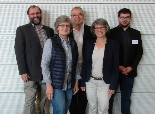 Neu gewählter Vorstand, von links: Thomas Ochsenreither (Bischöfliches Ordinariat Speyer), Karin Brech (Pfarrei Pax Christi Speyer), Karl Heitel (Krankenhaus Hetzelstift Neustadt), Sabine Eichhorn-Krämer (Caritas-Förderzentrum Paul Josef Nardini Zweibrücken) und Kristian Fink (Nardini-Klinikum Landstuhl).