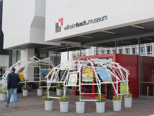 Ludwigshafen. Passanten, die derzeit am Wilhelm-Hack-Museum in Ludwigshafen vorbeigehen, sehen unweigerlich den besonders gestalteten Eingang: links und rechts von der Eingangstür stehen Blumengefäße aus Beton, die mit schnell rankenden Pflanzen bepflanzt sind. An einem großen Rankgitter, das wie ein Tunnel geformt ist, ranken sie empor, dazwischen hängen originale Kunstwerke aus dem Museum.