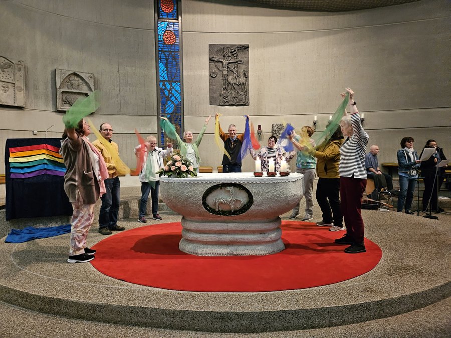 Im Anschluss an den Gottesdienst tauschten sich alle bei einem Umtrunk aus. Fröhliche Gemeinschaft war angesagt. Eine Teilnehmerin drückte es so aus: "Das war ein toller Gottesdienst. Ich gehe ganz erfüllt von soviel Buntheit nach Hause."