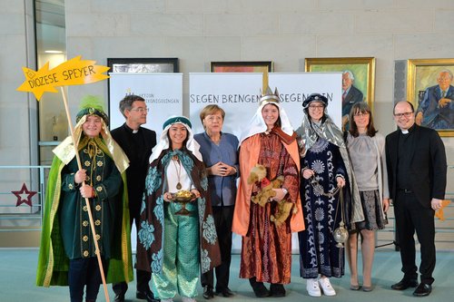 Seit 1984 bringen die Sternsinger jedes Jahr ihren Segen „Christus mansionem benedicat – Christus segne dieses Haus“ ins Bundeskanzleramt. Aus allen Himmelsrichtungen reisen sie in ihren prächtigen Gewändern, mit ihren goldenen Sternen und glänzenden Kronen in die Bundeshauptstadt. Bundeskanzlerin Angela Merkel empfängt die kleinen und großen Könige bereits zum 15. Mal.