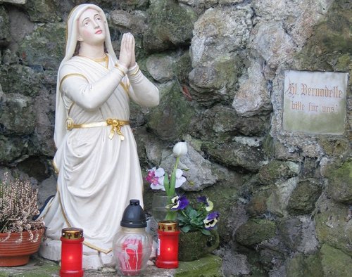 Der Heiligenlegende nach erschien im Jahr 1858 der damals 14-jährigen Bernadette Soubirous nahe der Stadt Lourdes insgesamt 18 Mal die Muttergottes. Sie forderte das Mädchen nicht nur auf, an dieser Stelle eine Kirche bauen zu lassen, sondern zeigte ihr auch den Weg zu einer Grotte mit einer Quelle. Diese Quelle wurde berühmt, nachdem ein blinder Mann sich die Augen mit dem Wasser daraus benetzt hatte und danach wieder sehen konnte. Dieses Wunder trug dazu bei, dass die Marienerscheinungen Bernadettes, die aus sehr armen Verhältnissen stammte und Zeit ihres Lebens kränklich war, anerkannt wurden. 1866 entschloss sich die junge Frau in das Kloster der Barmherzigen Schwestern in Nevers einzutreten, wo sie sich in der Krankenpflege engagierte. Im Alter von nur 35 Jahren starb Bernadette 1879. Am 8. Dezember 1933 sprach Papst Pius XI. die Seherin und Nonne heilig. Der südfranzösische Ort Lourdes entwickelte sich zu einem Marienheiligtum und zählt mit vier bis sechs Millionen Pilgern pro Jahr zu einem der größten Wallfahrtsorte weltweit.