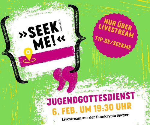 Laut Kaplan Matthias Schmitt, dem Leiter der Berufungspastoral Speyer, ist „Seekme!“ („Such mich!“) eine neue Art von Gottesdienst für junge Menschen. „Jugendliche sind auf der Suche nach ihrem Platz im Leben und vielleicht auch auf der Suche, was Gott mit ihrem Leben vorhat. ‚Seekme!‘ möchte bei dieser Suche helfen“, so beschreibt Schmitt den Gottesdienst. Besondere Akzente werden auf die Predigt und den modernen Lobpreis gelegt, einem Musik- und Gebetsstil, der immer mehr Zuspruch von Christen aus allen Konfessionen findet. Die musikalische Gestaltung übernimmt an diesem Abend die geistliche Gemeinschaft Chara aus Gerbach. Die Domkrypta wird in ein Lichtermeer getaucht werden, um den ältesten Teil des Domes besonders hervorzuheben. Predigen wird Sandra Petrollo Shahtout, Referentin in der Berufungspastoral Speyer.