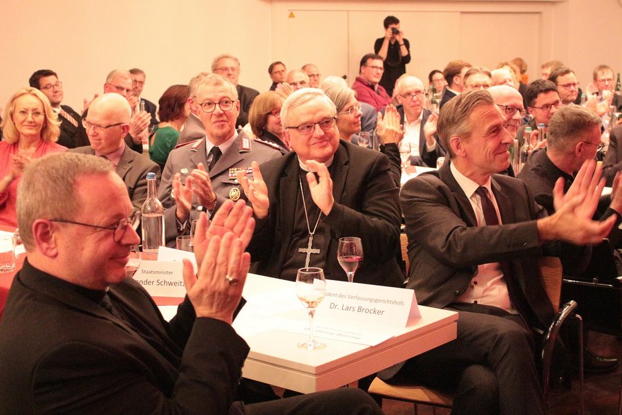 Der rheinland-pfälzische Staatsminister Clemens Hoch sprach in Vertretung von Ministerpräsidentin Malu Dreyer das Grußwort der Landesregierung, da Dreyer kurzfristig hatte absagen müssen. Hoch hob hervor, dass in Deutschland alle Menschen sicher leben und ihre Religion frei ausüben können müssen: „Es darf nicht sein, dass Jüdinnen und Juden wieder Angst haben“, sagte Hoch. Die Antwort auf den Terror der Hamas vom 7. Oktober könne nur menschliches Mitgefühl und klare Solidarität mit Israel sein. „Die Landesregierung und der Landtag haben diese Solidarität unmissverständlich deutlich gemacht“, betonte Staatsminister Hoch. Er würdigte die Kirche als wichtigen gesellschaftlichen Gesprächspartner und dankte den Bistümern für die gute Zusammenarbeit in vielen Bereichen.