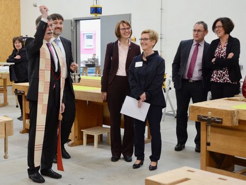 Landau. Voller Erleichterung, Freude, Dankbarkeit, Stolz und Motivation für eine Zukunft, die – so das Motto - „gemeinsam gelingt“, feierte das Jugendwerk Landau am Montagmorgen mit vielen Gästen aus Kirche und Politik die Wiedereröffnung und Einweihung der neuen Tischlerei. Sie steht als zukunftsweisende Investition und innovativer Ausbildungs- und Arbeitsort genau an jener Stelle, wo im August 2015 die alte Werkstatt abgebrannt war.  Und sie gründet auf den Wurzeln, die hier mit der Ausbildung für Jugendliche in schwierigen Lebenssituationen vor über 100 Jahren verankert wurden. Eine Schreinerei war schon damals wichtiger Dreh- und Angelpunkt der katholischen Einrichtung. Heute ist das neue Gebäude, zu dem auch Unterrichtsräume und Büros gehören, sogar ein Leuchtturm in der ganzen Region.