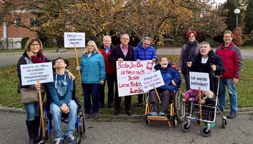 Zwölf Bewohner, Angehörige und Mitarbeiter des Caritas-Förderzentrums fordern „Teilhabe – jetzt erst Recht!“