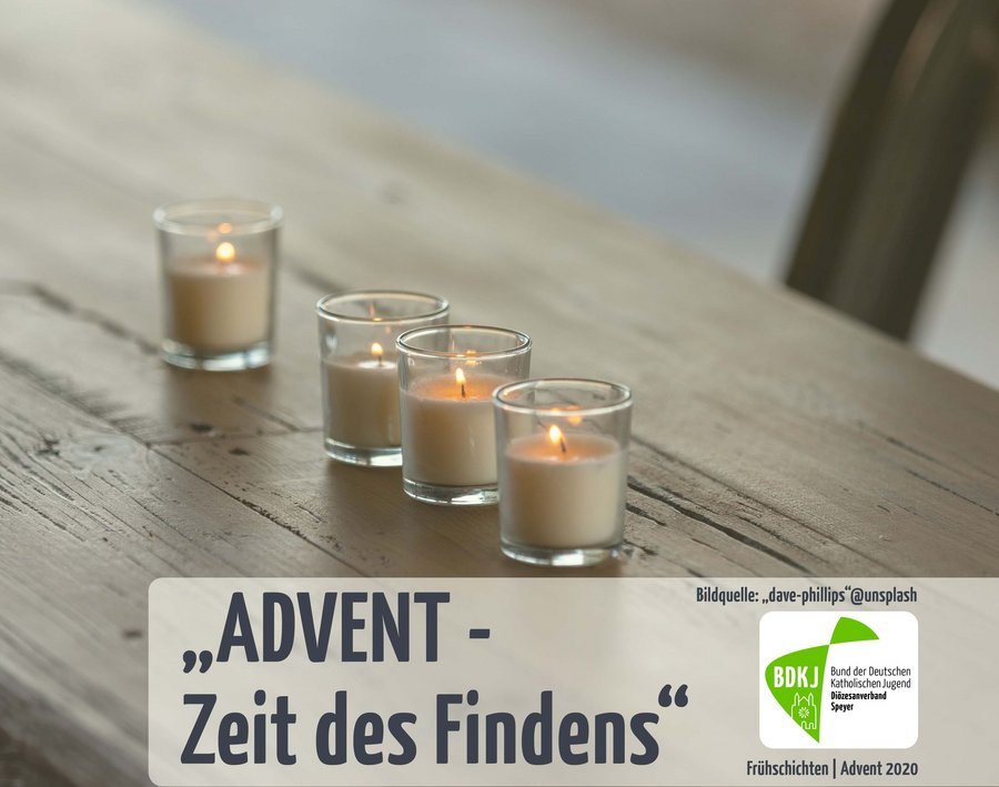 Hinweis: Die aktuelle Frühschichtenausgabe „Advent – Zeit des Findens“ kann über das Referat Religiöse Bildung als PDF oder in gedruckter Form bestellt werden. Anfrage an: bdkj.relbild@bistum-speyer.de