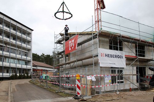 Schifferstadt. „Es ist ein schönes Gefühl wenn etwas Neues geschieht, aber es ist auch mit ein bisschen Wehmut verbunden“. Mit diesen Worten begrüßte Vinzenz du Bellier, Geschäftsführer der CBS Caritas Betriebsträgergesellschaft Speyer, die geladenen Gäste beim Richtfest des ersten Neubaus auf dem Gelände des Caritas-Altenzentrums St. Matthias in Schifferstadt. Ganz traditionell brachte ein Zimmermann die Richtkrone am Dachstuhl an und sprach den Richtspruch.